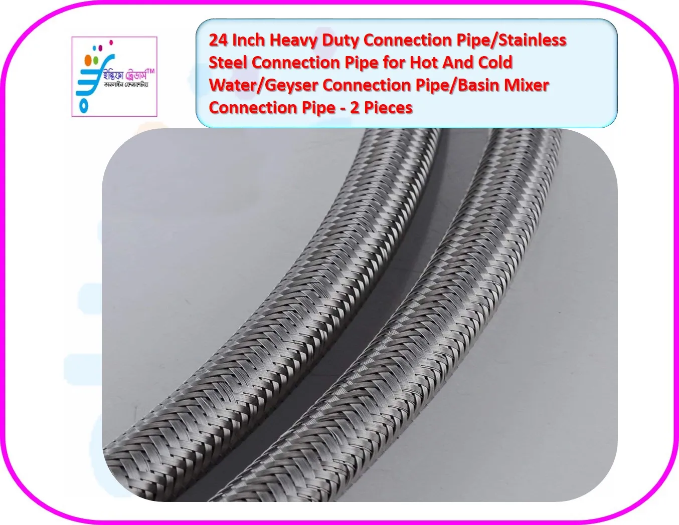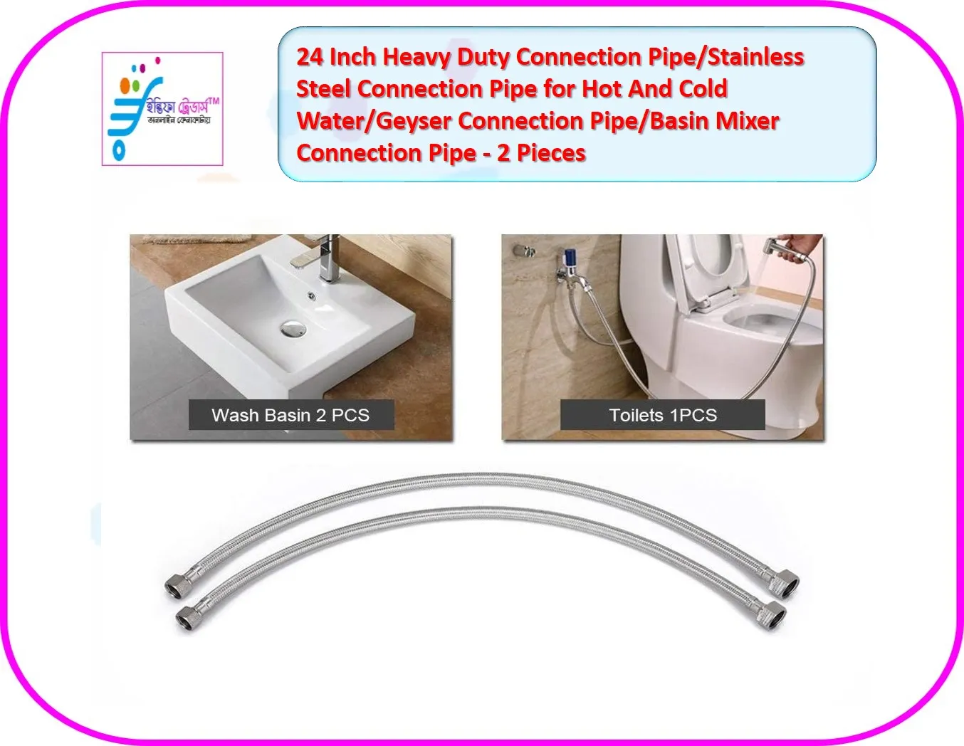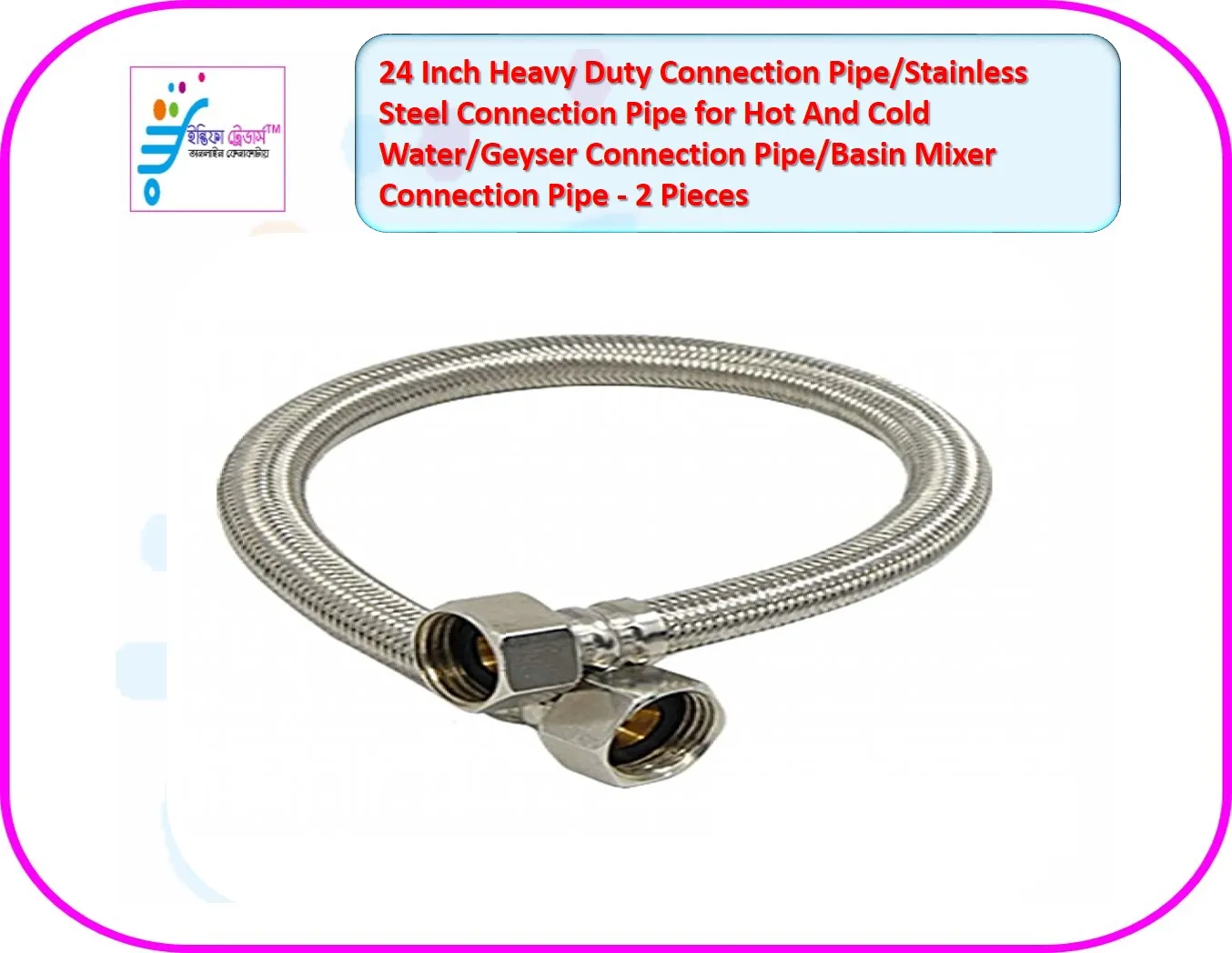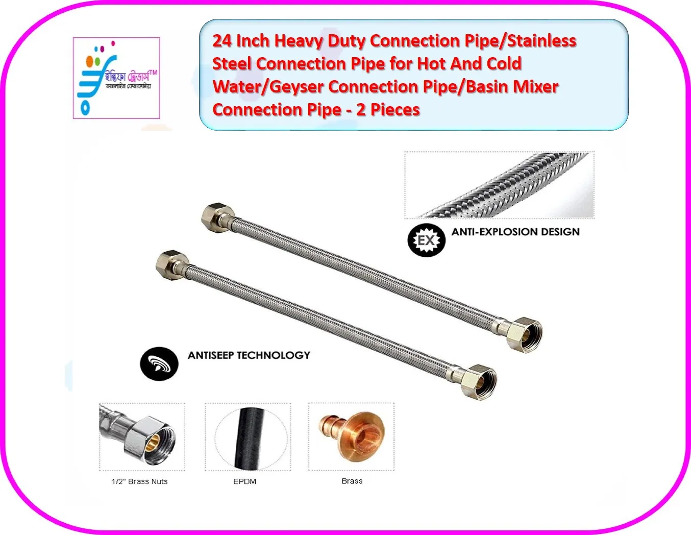 24 Inch Heavy Duty Connection Pipe/Stainless Steel Connection Pipe for Hot And Cold Water/Geyser Connection Pipe/Basin Mixer Connection Pipe – 2 Pieces