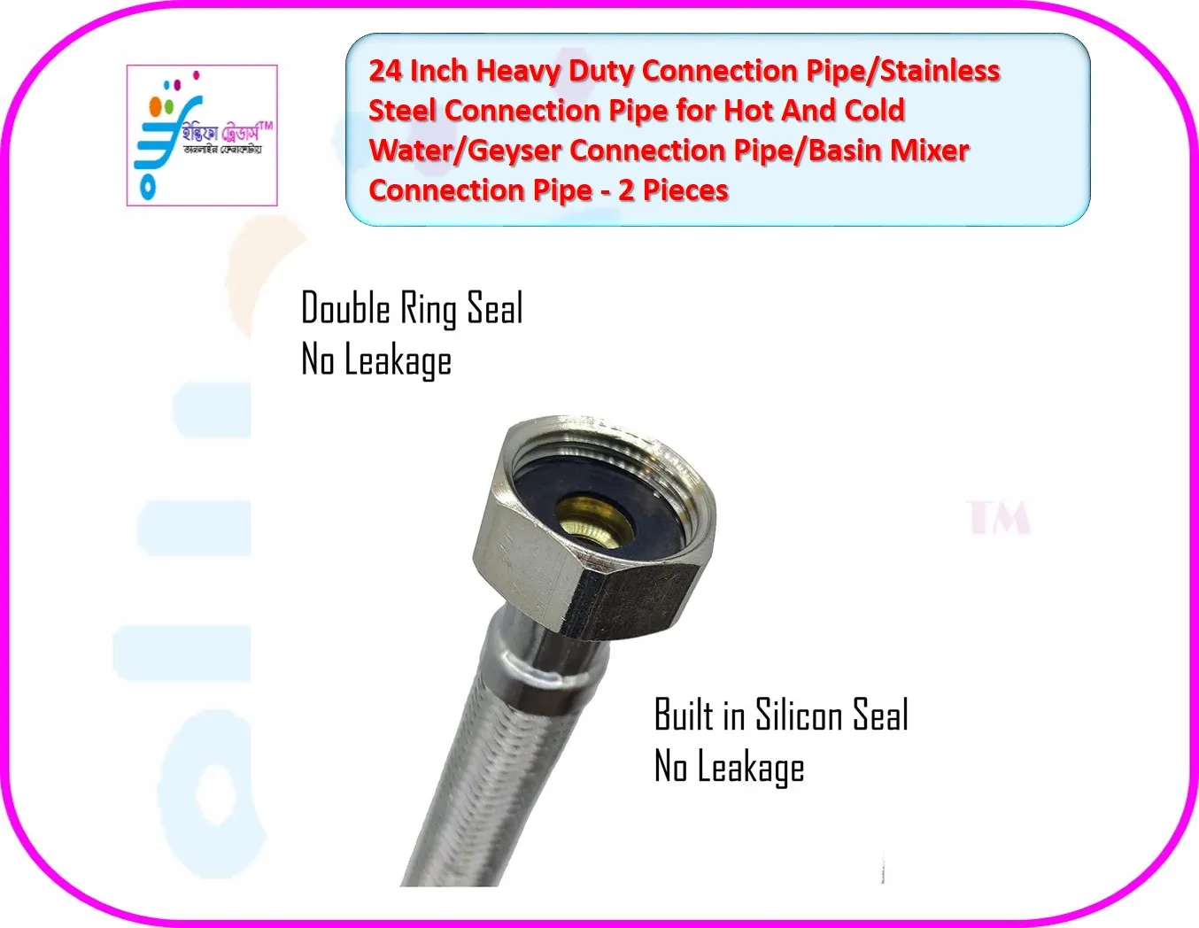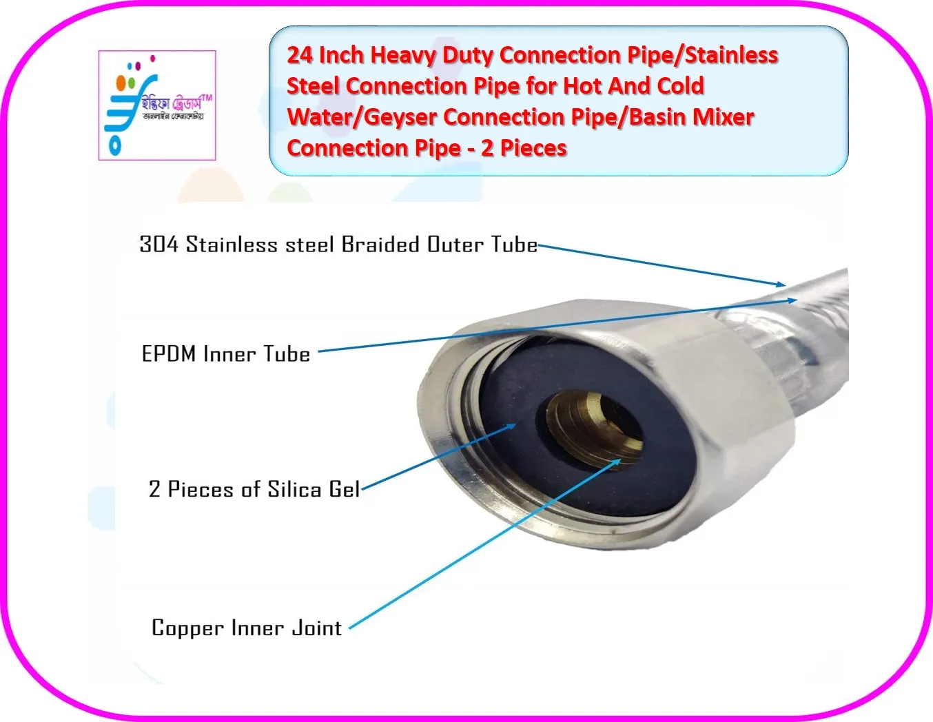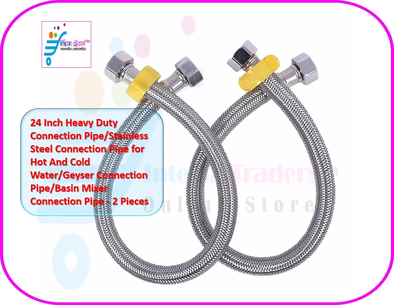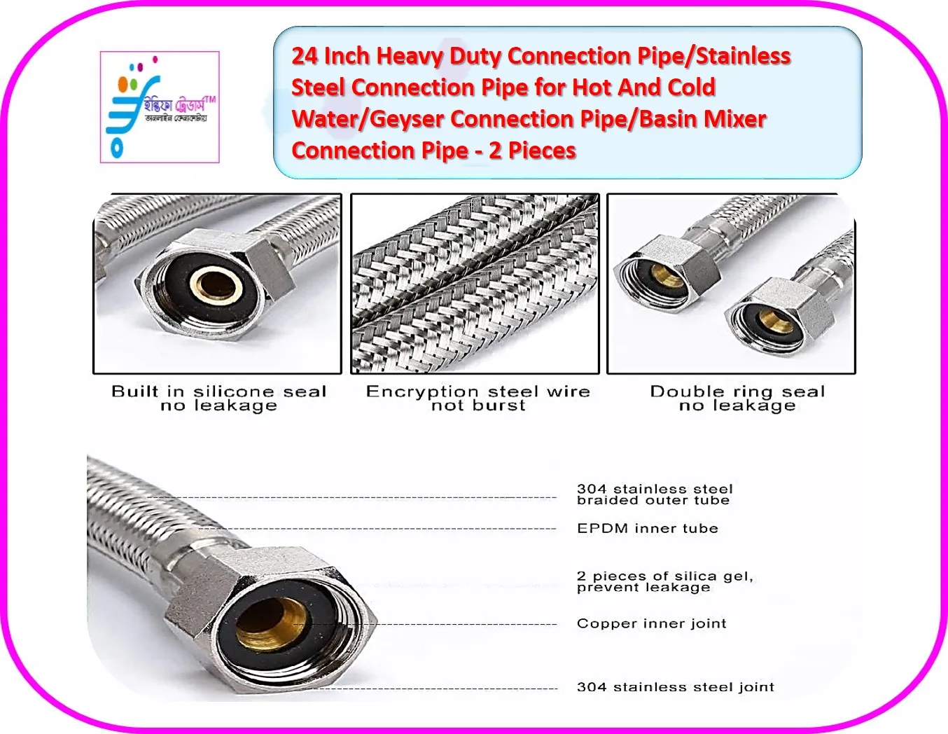 24 Inch Heavy Duty Connection Pipe/Stainless Steel Connection Pipe for Hot And Cold Water/Geyser Connection Pipe/Basin Mixer Connection Pipe – 2 Pieces