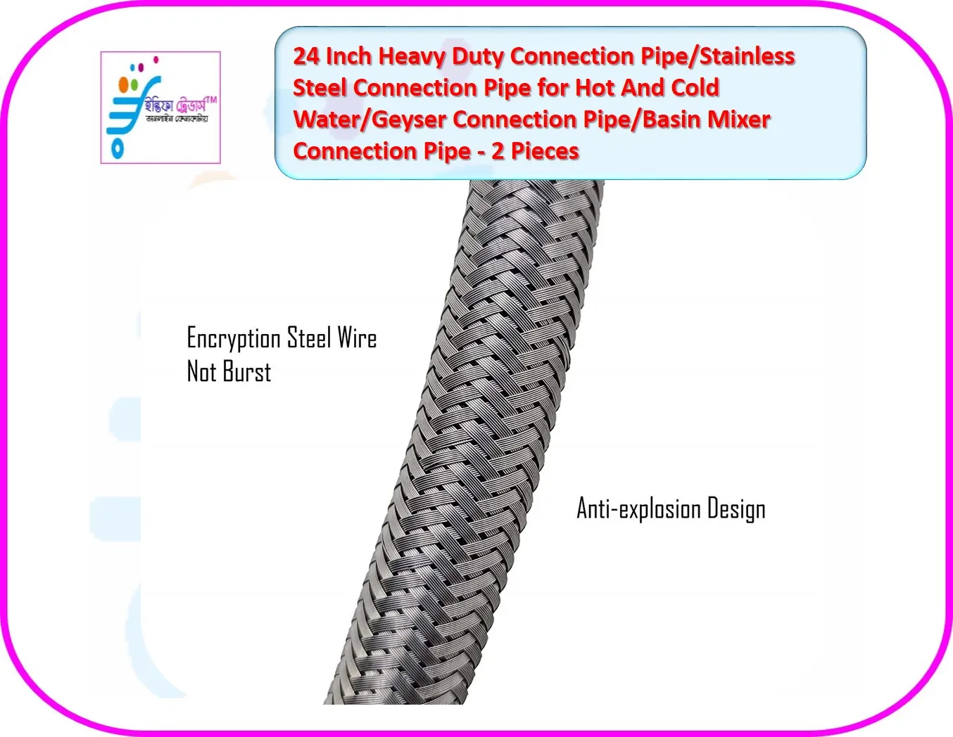 Product details of 24 Inch Heavy Duty Connection Pipe/Stainless Steel Connection Pipe for Hot And Cold Water/Geyser Connection Pipe/Basin Mixer Connection Pipe – 2 Pieces