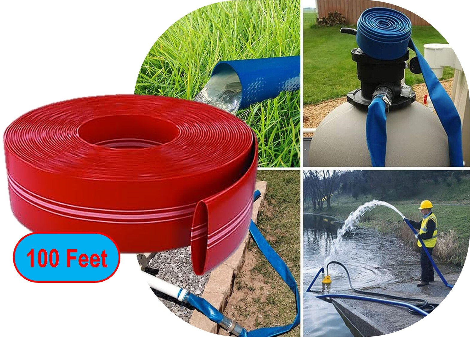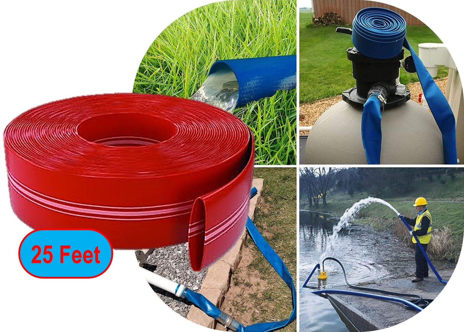 Product details of 3″ Red Heavy Duty Lay Flat Agricultural Mud Water Hose Irrigation Hose for Discharge or Backwash Water Transfer Applications, Reinforced PVC, 25’/50/100 feet Length