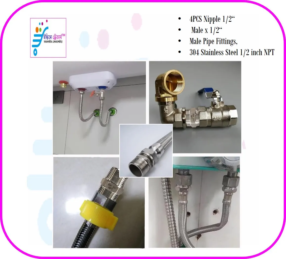 This 4PCS Nipple Pipe Fittings set is made of high-quality 304 stainless steel, ensuring durability and resistance to corrosion. The 1/2 inch NPT Male Threaded Pipe Adapter Fittings are designed to connect pipes with ease, making it a great addition to any plumbing project. The Male Straight Connector Pipe Fitting is an equal nipple connector that provides a secure and tight fit. This set is perfect for those in need of reliable and long-lasting pipe fittings.