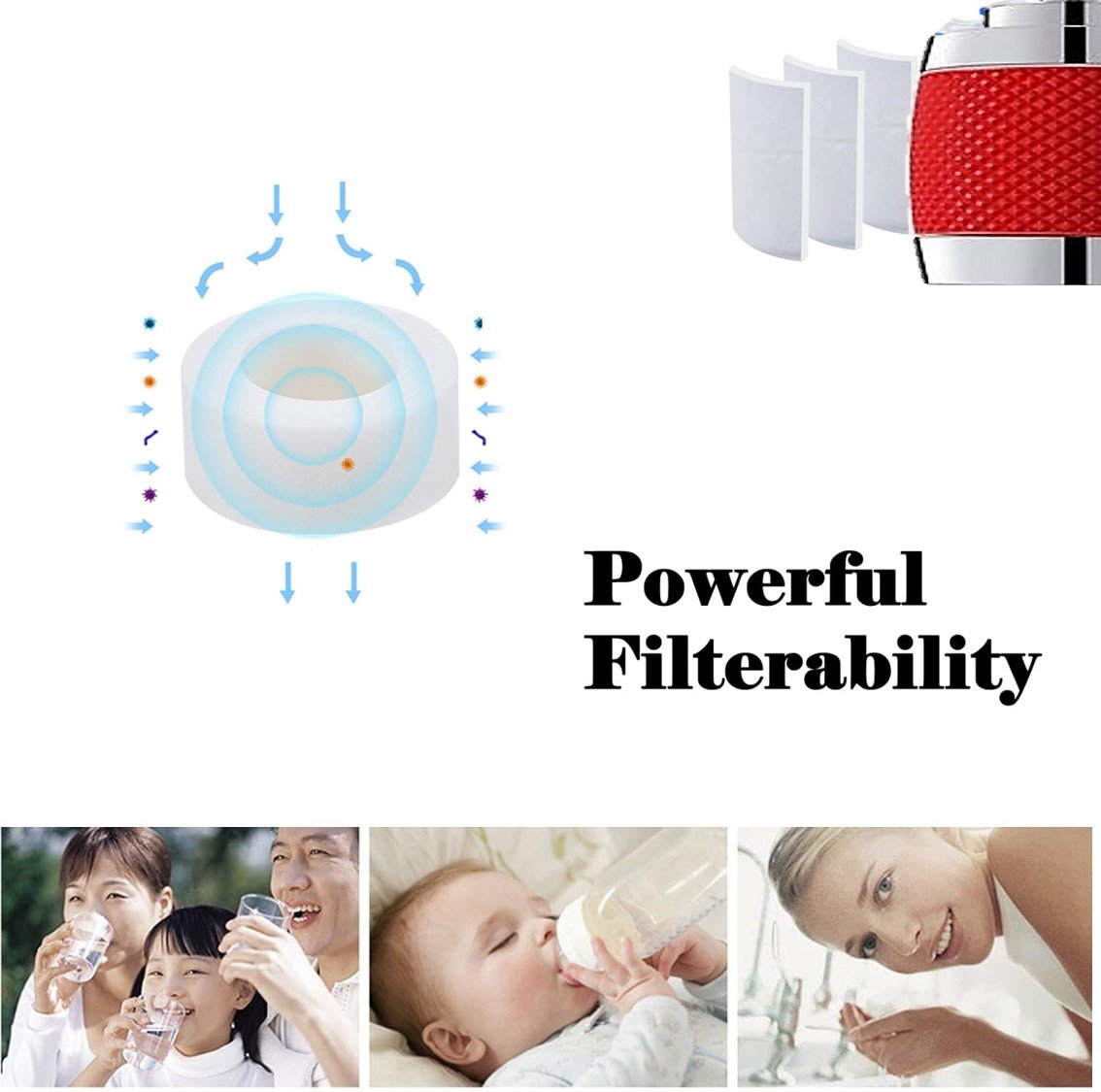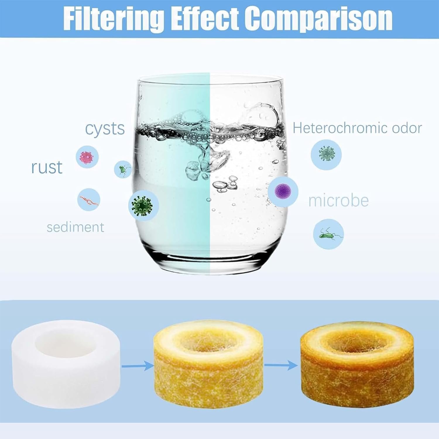 - Powerful Filtration Ability: Hard water filter with multi-layer micron PP filter cotton.Our sink water purifier has Strong filterability to remove chlorine, chloramines and soften hard water by filtering out up to 99.9% of lead, calcium, rust, iron, heavy metals and sediment. Softens hard water and protects the skin and health of you and your family.