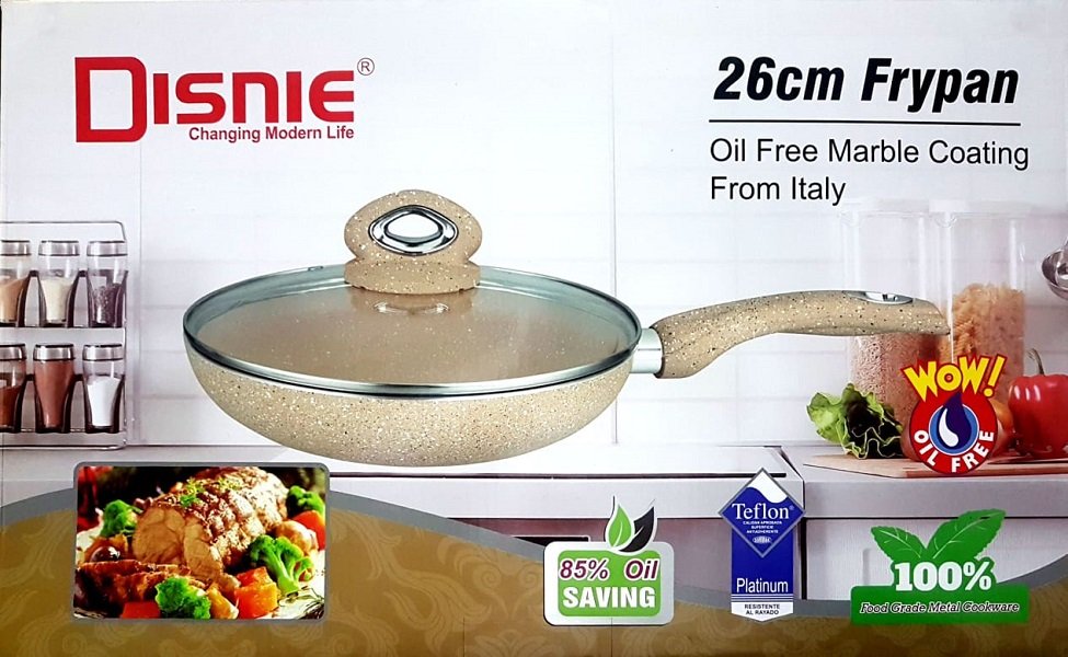 Product details of Disnie Marble Coating from Italy Ceramic Non Stick Cookware Induction Friendly Granite Fry Pan with Cover Gas & Induction Compatible-Brown Color