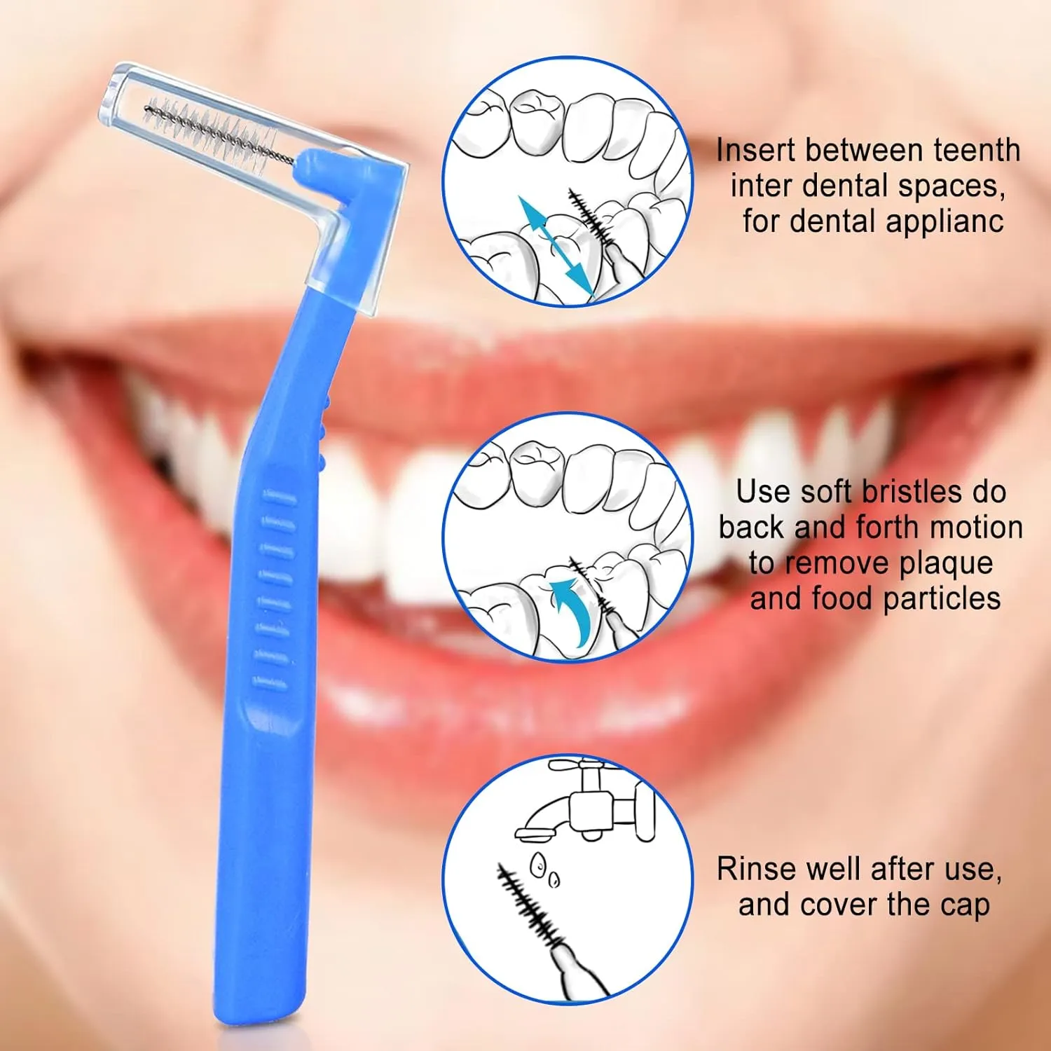 EFFECTIVE CLEANING: L shaped interdental brushes clean the mouth and remove food debris or residual foreign bodies conveniently and effectively. adult orthodontic care children’s orthodontic cleaning co