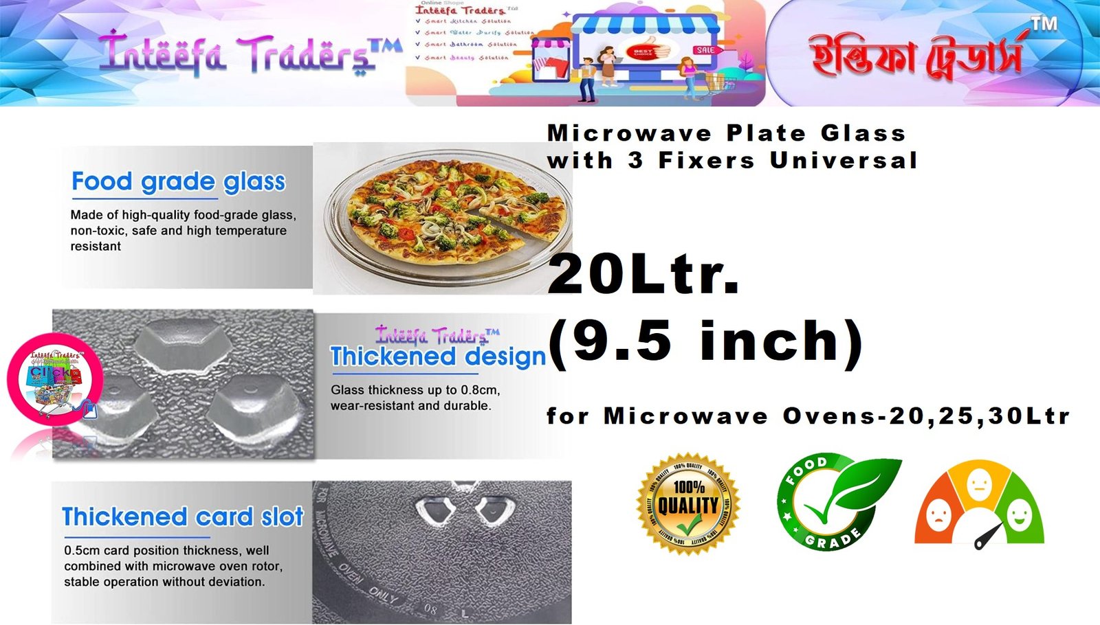 Microwave Heat Resistant Food Grade Glass Plate for Microwave Ovens-20,25,30Ltr