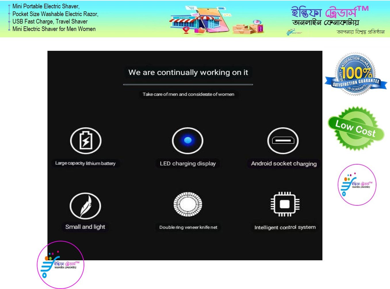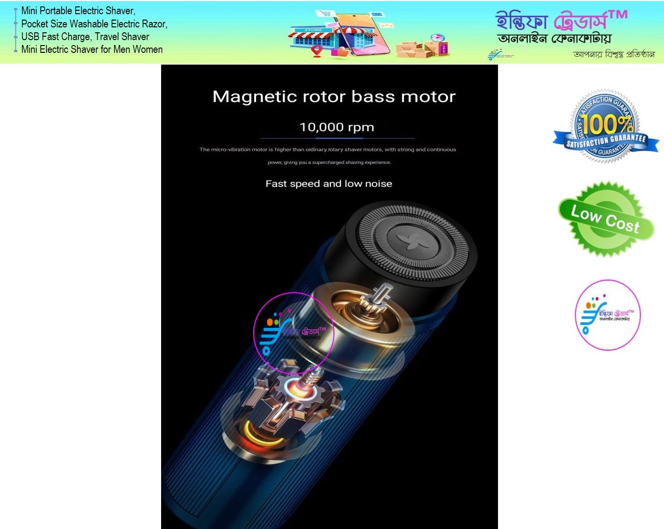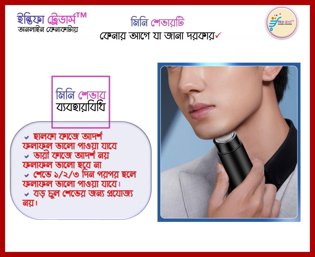 - বড় চুল শেভের জন্য প্রযোজ্য নয়।