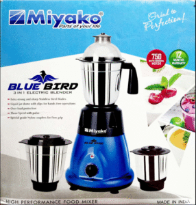 Miyako Blue Bird Mixer Grinder Blender Steel Jug Over Load Protecto Shock-Proof High Quality Universal Heavy Duty Motor 750W