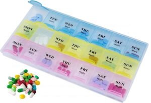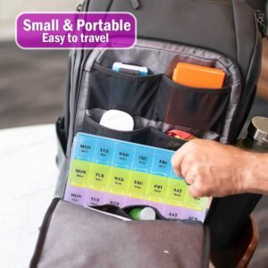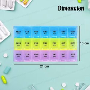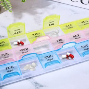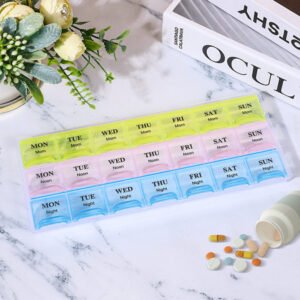 Pill Organizer with Weekly and Daily 3-Times-A-Day Compartments for Morning, Noon, Night – BPA-Free, Portable and Travel Friendly 7 Days 21/28 Slots Pill Box