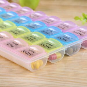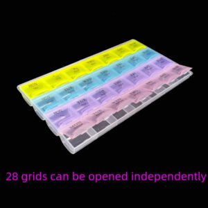 - 28 separate compartments to keep the pills or tablets for each day of the week.