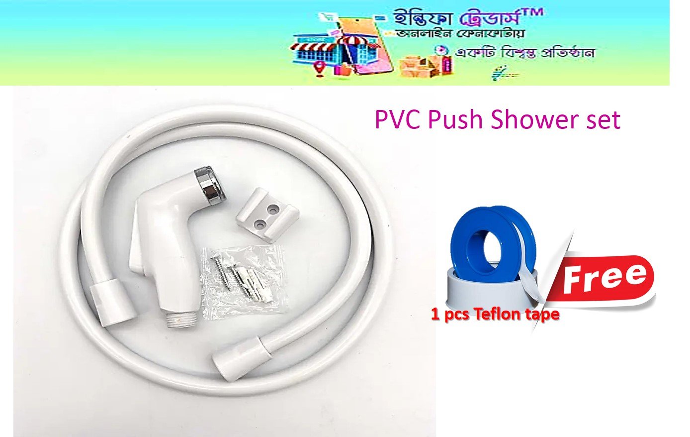 Product details of Push Shower Health Faucet Plastic Set (White, Shower Tube and Hook) PVC Spray Gun-Color Family:White